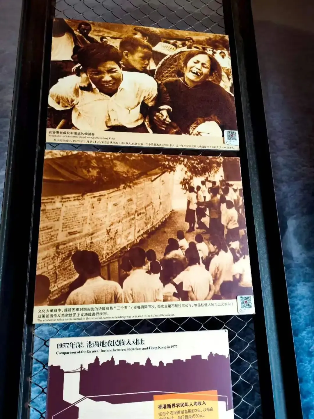 首站深圳博物馆,那些静默的史料与影像,将改革开放前后的深圳,清晰地铺展在眼前。泛黄的照片、珍贵的文献、真实的故事,勾勒出一段沉甸甸的过往:特殊年代里,深圳水库肩负起向香港供水的重任,一纸协议联结两地,是困境中依然坚守的温情与担当;而曾经的宝安县,在特殊历史背景下经历过经济凋敝、虚报产量、民生艰难的岁月,甚至出现过令人唏嘘的逃港浪潮,低矮的屋舍、贫瘠的土地、困顿的生活,是改革开放前最真实的情态。