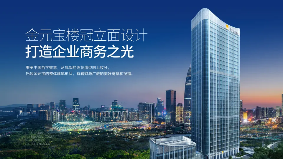 阳光金融大厦位于深圳市南山区后海金融商务区核心,是阳光保险集团总部所在地。项目由国际建筑事务所伍兹贝格设计,以"金元宝"楼冠立面和弧形轮廓为标志,融合现代美学与中国哲学智慧。大厦通过空中连桥连接主塔楼与商业裙楼,形成立体商务动线。内部采用VAV空调系统、双层隔音玻璃及智能化管理平台,提供低能耗、高舒适的办公环境。其定位为"后海总部商务会客厅",周边集聚腾讯、阿里、华润等80余家名企总部,毗邻深圳湾万象城、海岸城商圈及人才公园,兼具商务便利性与人文生态资源。