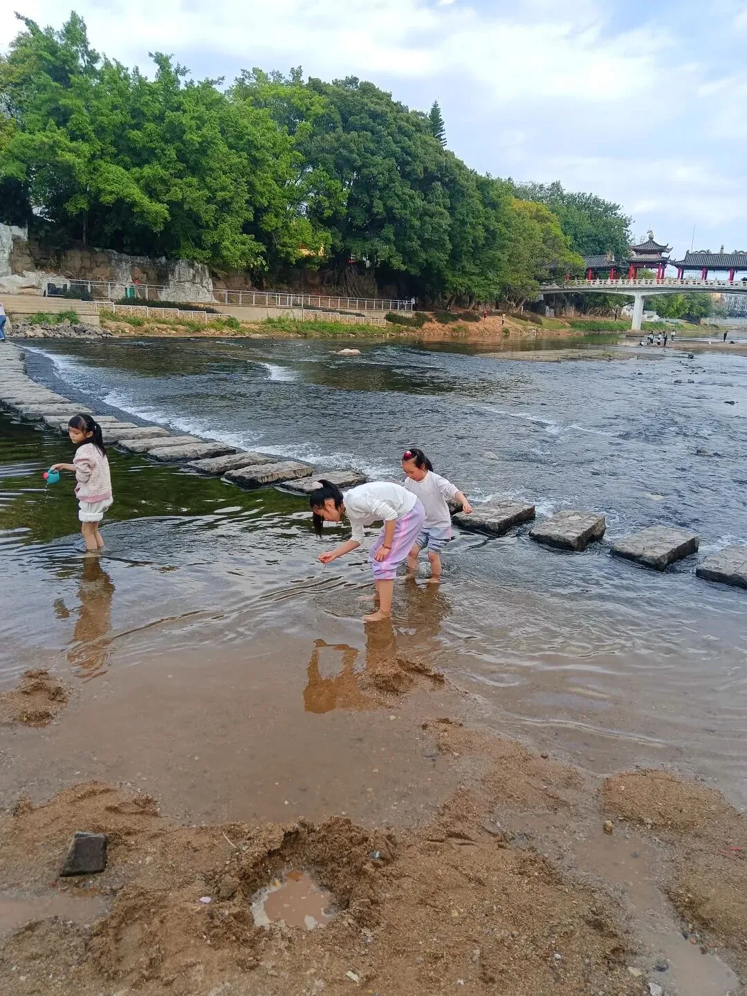 龙岗河依傍而建,河水浅而清澈见底,依稀可看见鱼群嬉戏,一群群快乐的小孩挽起裤腿,在水里要捞鱼摸虾(捞石头摸沙子)😂