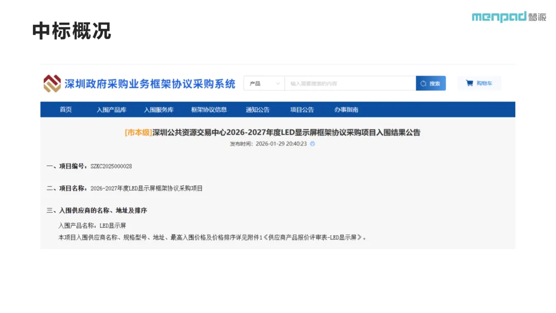 >喜报:梦派LED入围深圳公共资源交易中心2026-2027年度LED显示屏框架协议采购项目