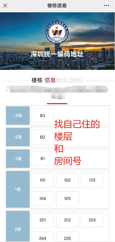 4、找到自己所在的楼层和房间号,点击进入,即可获取自家的25位房屋编码;如果需要的话,点击右边灰色的小正方形,可以直接复制。