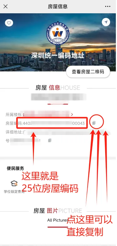 如果自家房门中间或其他位置有二维码贴纸,用手机扫码(微信等可扫描二维码的软件皆可),即可获取25位房屋编码。