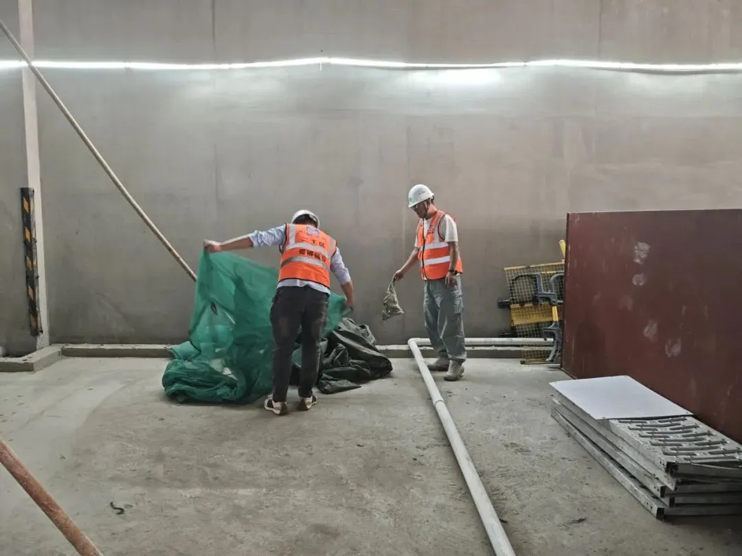 活动现场,职工们手持工具分区域开展整治,高效完成施工通道冲刷、地下施工区域残渣清理与物料规整、办公及生活区域全面清洁,擦拭宣传栏、安全标识牌等设施,确保各区域干净规范、井然有序。项目党支部书记吴锋参与劳动时强调,此次卫生整治既是新春大扫除,更是现场隐患全面排查,整洁的环境是高效施工、安全生产的重要保障。