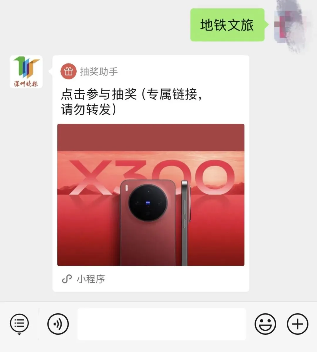 3、在对话框中输入关键词 “地铁文旅”,获取链接参与抽奖