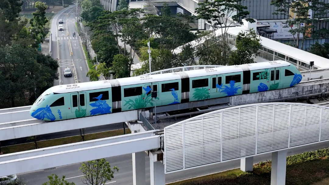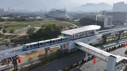 作为广东唯一运营的云巴线路,坪山云巴1号线穿梭于比亚迪北与坪山高铁站之间,途经自然博物馆西等十一座站点,将产业高地与文化地标紧密相连。它像一条流动的“城市动脉”,连接着比亚迪、中芯国际的创新脉搏;同时,它也是一张城市名片,见证着这里从“工业大区”到“文化强区”的美丽蝶变。