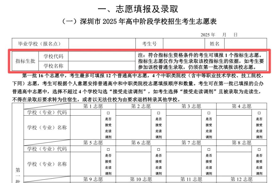 1、指标生批次志愿与第一批志愿相互独立,如考生要参加该校普通生录取,仍须在第一批次填报该校志愿。