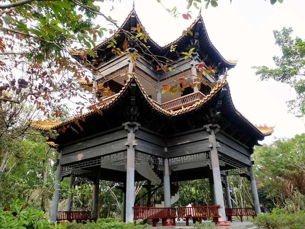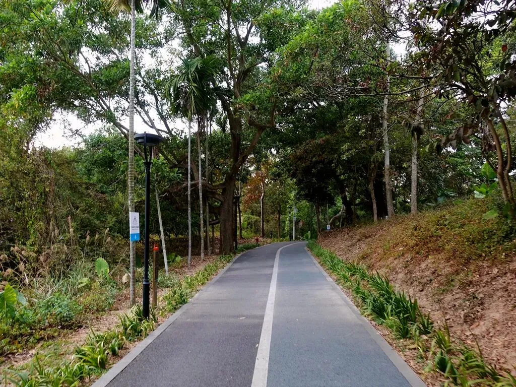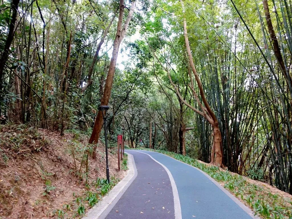 途中得知有几位队员,要在马峦山北门下山,跟领队沟通后,跟他们从北门桃花谷下山。为了满足我观赏落羽杉的愿望,几位队员放弃了继续爬几个山头的想法,从最近的路线下山,并且开车送我到公园南边的入口,由此处走到北门就不用走回头路了。一位住在附近的队员,经常在大山陂公园散步。他陪我穿过公园,还热心介绍公园的情况,以及落羽杉的位置。