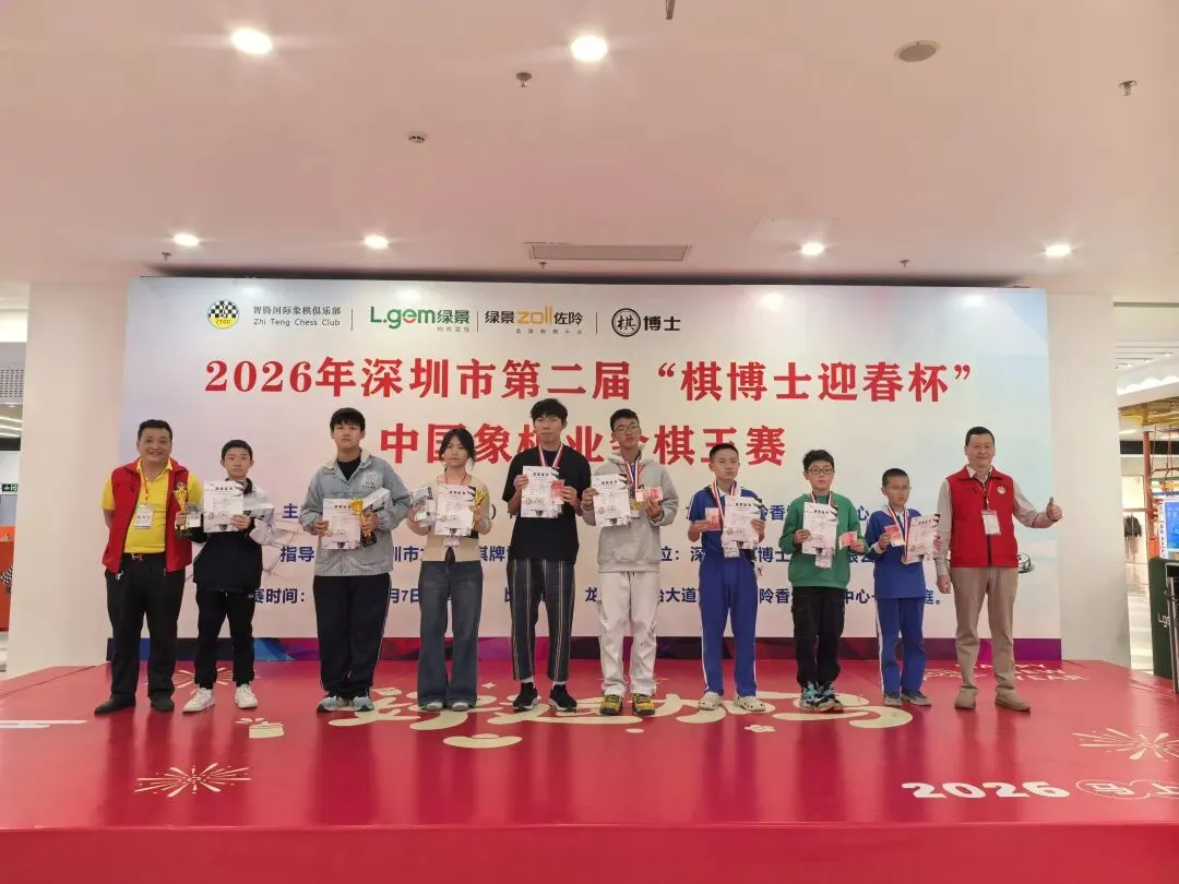 棋盘之上,智谋交锋;棋手之间,意气飞扬。近日,2026年深圳市第二届“棋博士迎春杯”中国象棋业余棋王赛圆满收官。作为深圳市中国象棋领域的标杆赛事之一,本届大赛由智腾棋院(深圳)有限公司倾力主办,龙华区佐阾香颂购物中心协办,深圳市棋博士科技有限公司赞助。