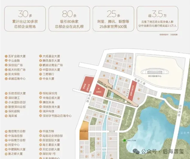 深圳湾芯收官之作,铸就时代恒产。项目择址后海总部基地,踞守粤港澳大湾区几何中心,既是串联深圳各核心功能区的关键枢纽,更是大湾区资源密度顶尖、制度开放领先的总部经济高地,创富能级位居全国首位,汇聚世界500强领袖级总部集群。(数据来源:深政观察)