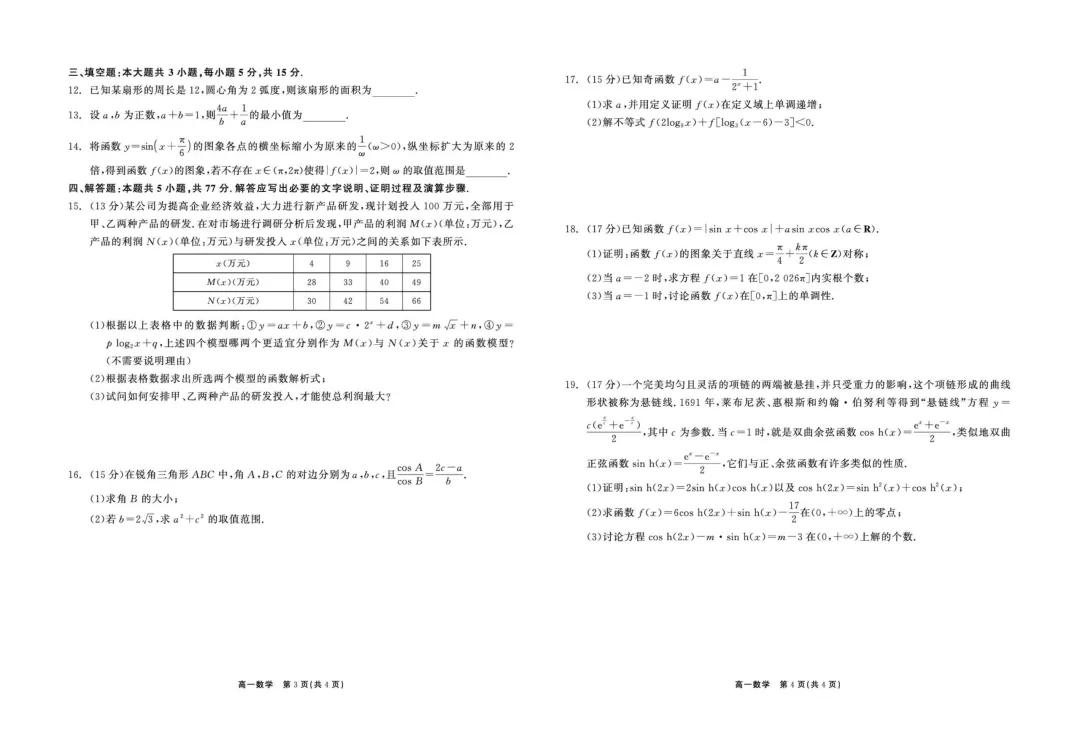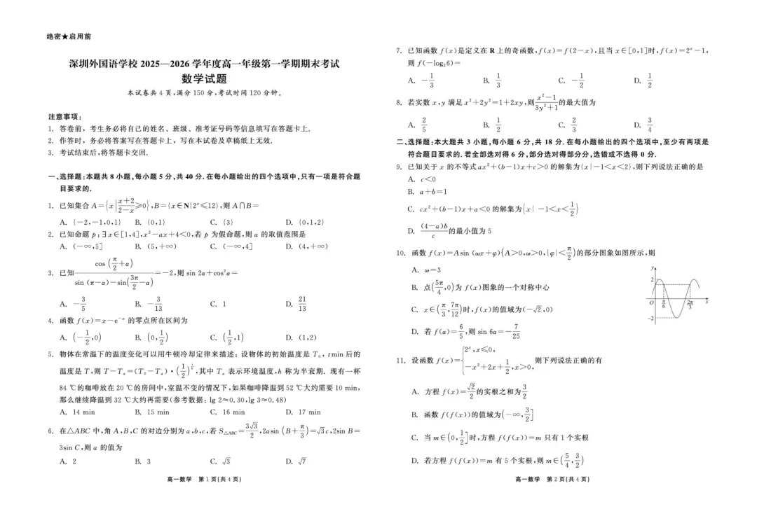 作者寄语:深圳外国语学校2025-2026学年高一上学期期末考试数学试题+答案,7天有效领取,手慢无!!!
