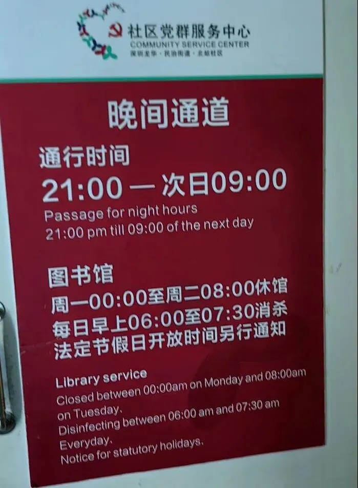 本来想直接到车站候车厅休息等天亮离开没想到深圳北站会清场幸好刷到过北站附近有一个社区服务中心可以免费过夜就导航过来了,里面还是很干净卫生安静的需要刷身份证还有行李箱不能进来(我是拿进来了后来一个大爷走进来摸着我箱子说行李箱不能放里面要寄存在外面出图书馆右手他把门打开带我进去一个房间我看到黑乎乎的还担心于是把手电筒打开还放了好几个箱子我连忙问大爷有摄像头?他指着上面我看到摄像头,出来后大爷告诉我明早6点就开门可以拿走了。