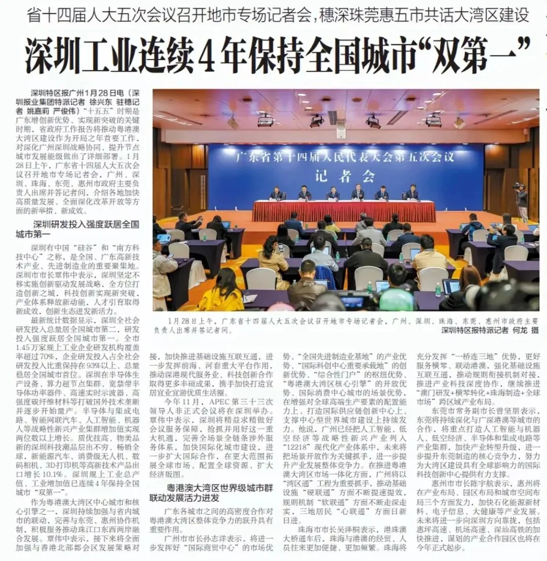 2025年,深圳规上工业总产值、工业增加值连续4年保持全国城市“双第一”。