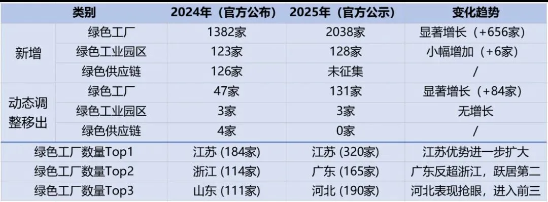 2025年国家级绿色制造名单的核心变化,可总结为以下四点:
