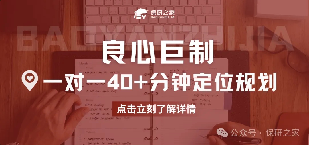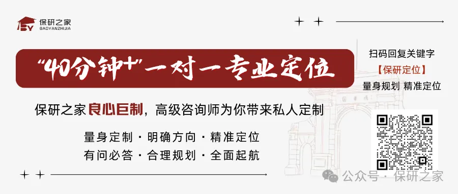 在保研之家,成功的公式为:贴心的服务+靠谱的咨询师团队+ 成熟的教学体系+全面的专业资料库=成功的案例。从保研规划定位、挖掘价值洼地、到论文科研指导、专业笔试辅导、文书面试辅导,保研之家伴你全程,助你一骑绝尘圆梦理想院校!