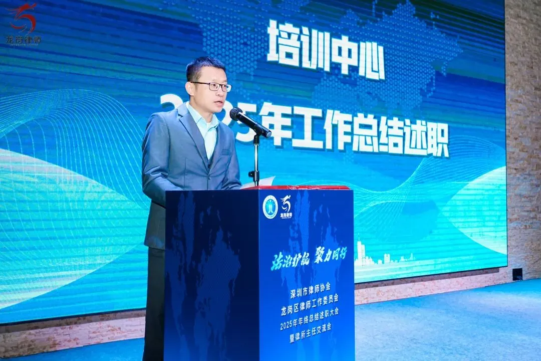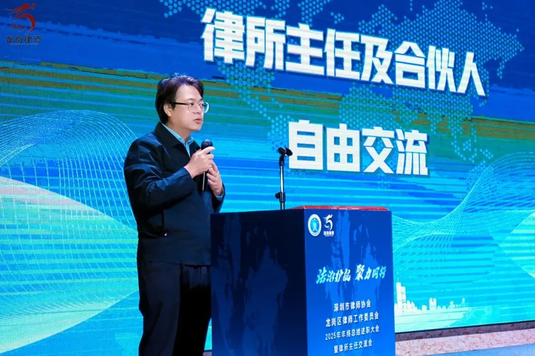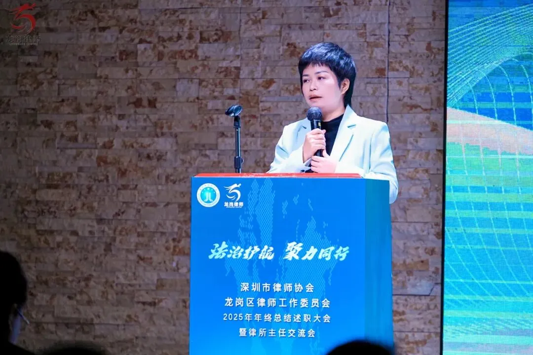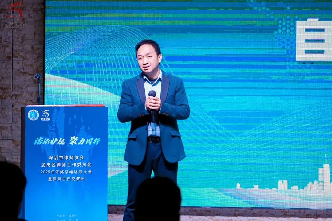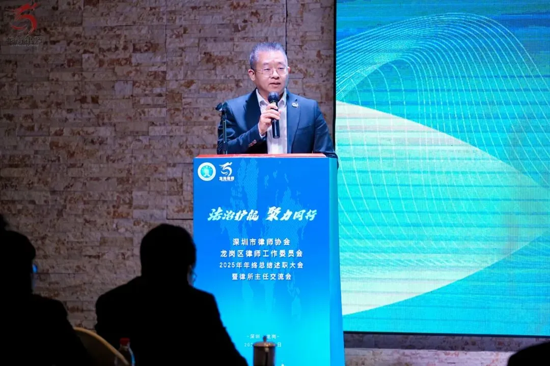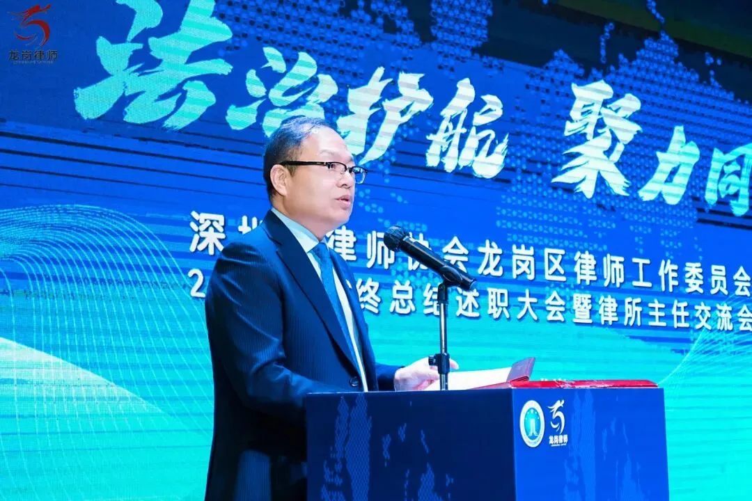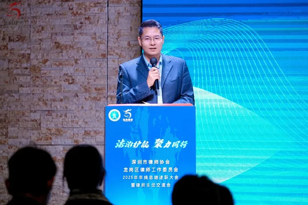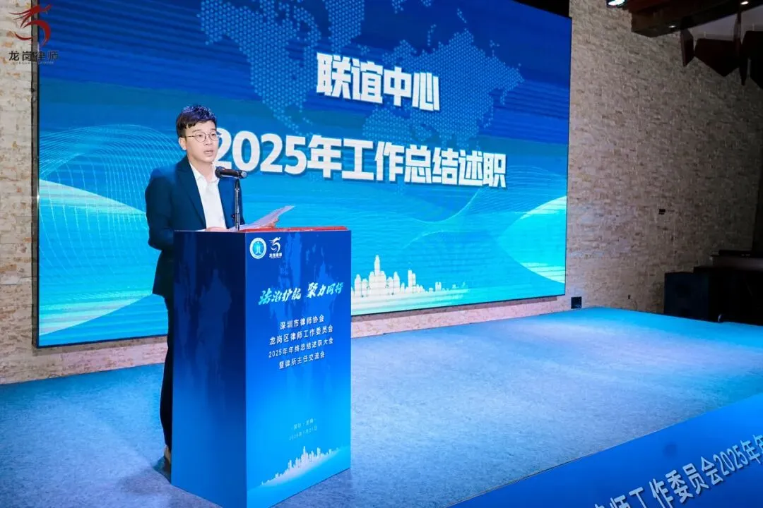 2026年1月21日下午,深圳市律师协会龙岗区律师工作委员会2025年年终总结述职大会暨律所主任交流会在龙岗区顺利举行。龙岗区司法局党组书记、局长赵魏,龙岗区司法局党组成员、副局长、三级调研员邹晖,律公科科长李俊杰,深圳市律师协会会长张斌、副会长曾迈、副监事长吴小波,区律师行业党委副书记李军强、委员罗娟、杨嘉华、魏蔚、柯琪瑞,区律师行业纪委副书记邹业锋、委员刘江栋、杨琴,区律工委主任副主任刘泽华、唐毅、曾素贞,各工作中心主任、委员,以及区属律所主任、合伙人等共同出席了本次会议。
