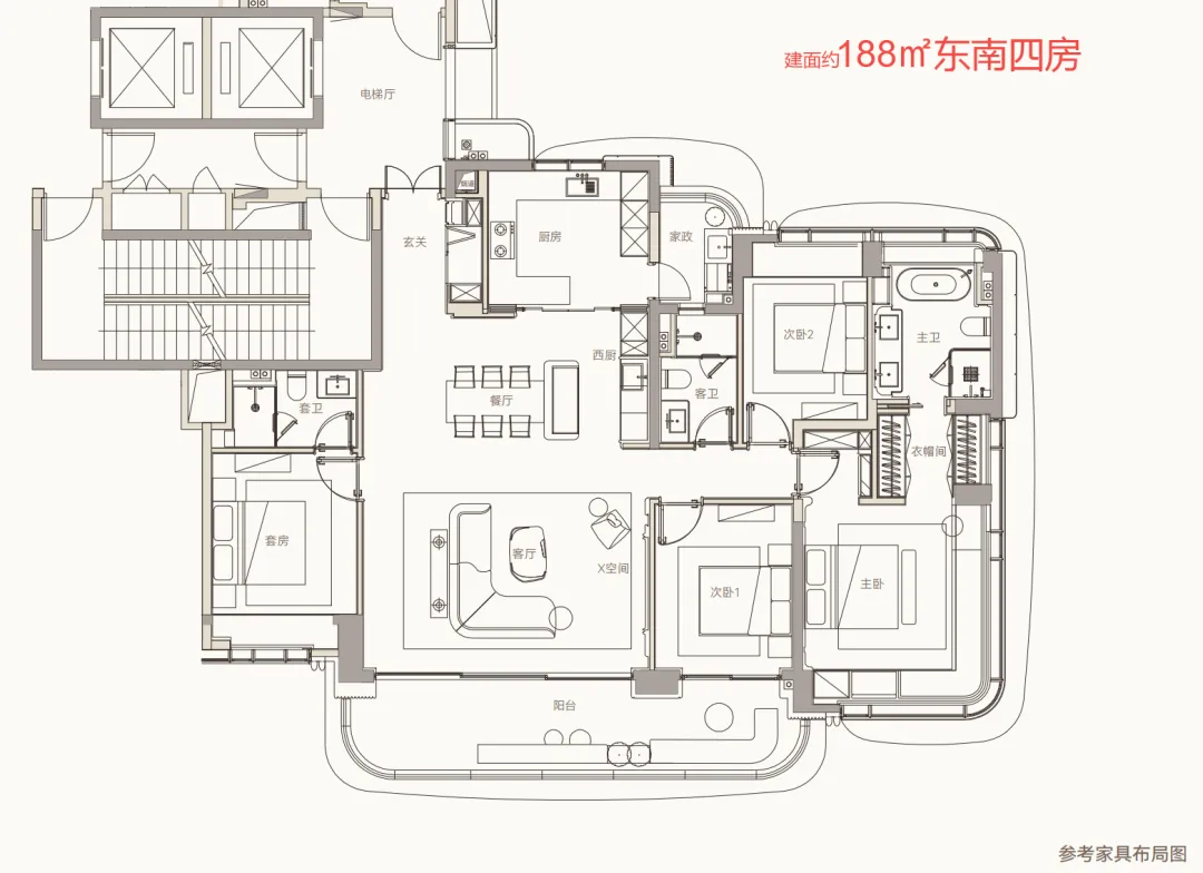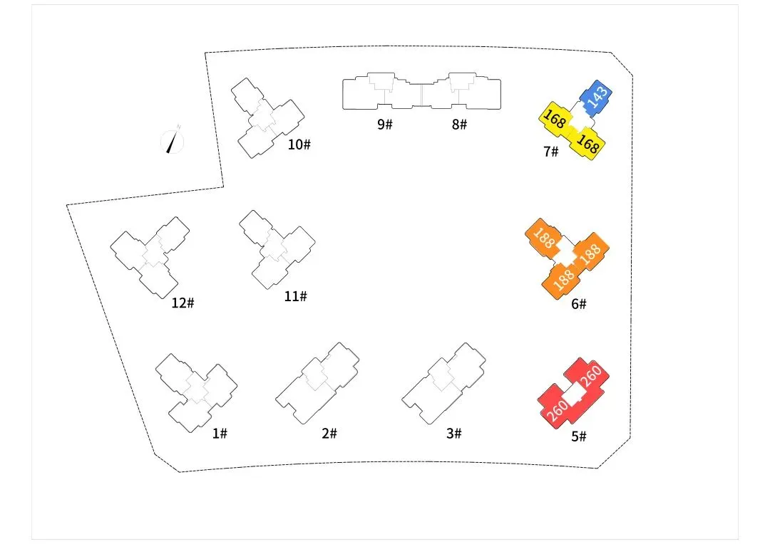 整盘610席,建面约143-500㎡。首批仅180余套纯住宅,首推户型:168㎡、188㎡、260㎡和330㎡。