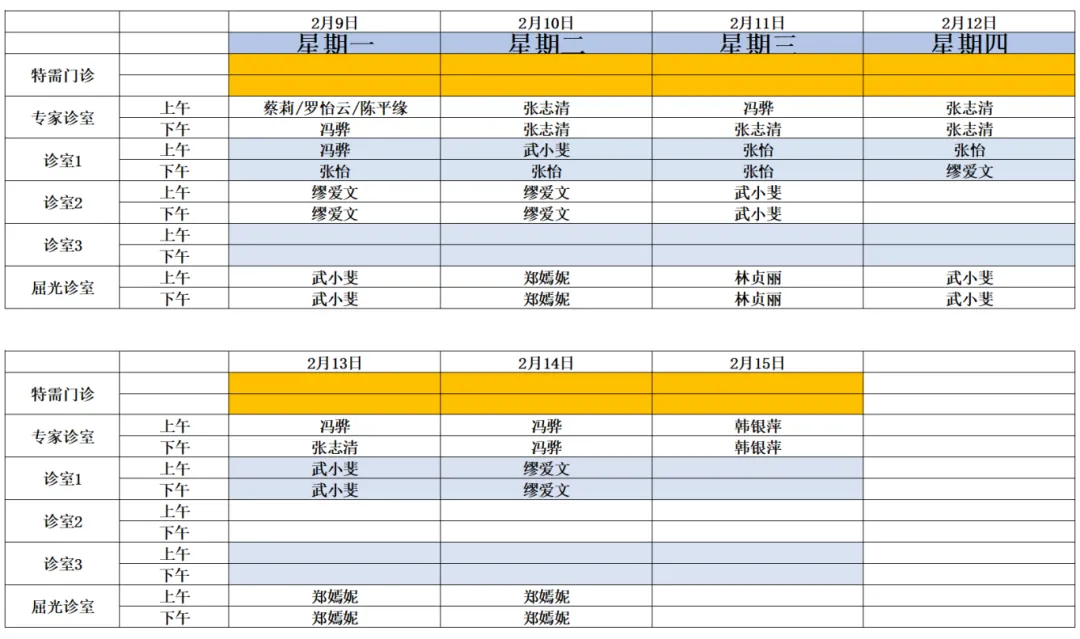 >2026年2月9日~2月14日深圳大学总医院眼科医生出诊信息