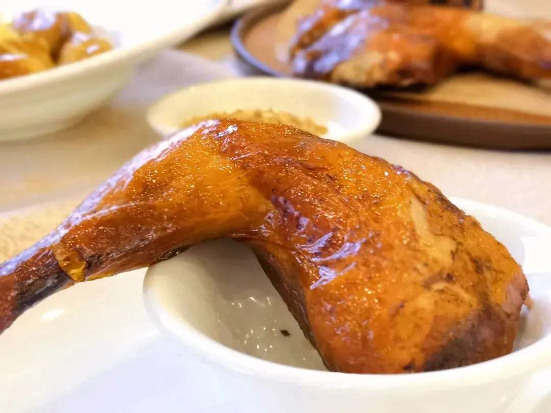 东莞的烧鹅,是广东省内出了名的好吃。你想啊,能把大只的鹅烧得那样皮脆肉嫩,脂香四溢的地方,烧只鸡能差到哪里去呢?毕竟烧鸡和烧鹅的道理总是相通的的。