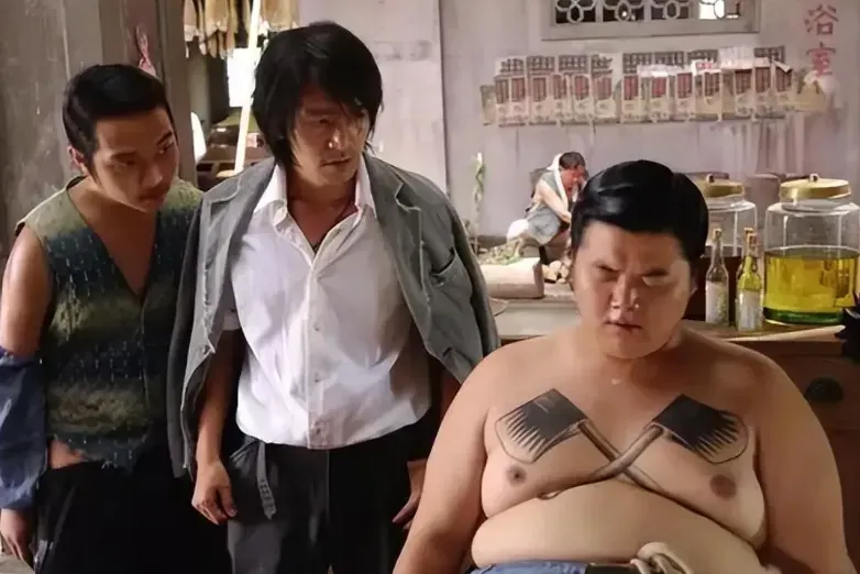 《功夫》里的“肥仔聪”把灵活的胖子人设带到球场,别看体型敦实,护球技术堪比齐达内,还会跟陈国坤复刻斧头帮兄弟同框名场面。