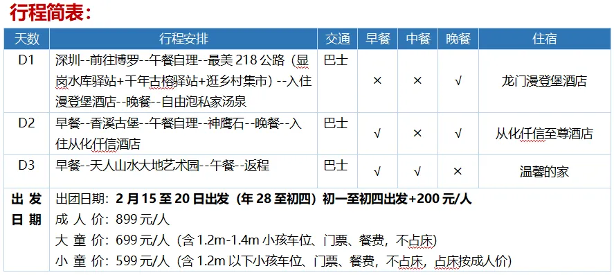 14:00结束愉快的旅程,乘车返回深圳。(车程约2小时)