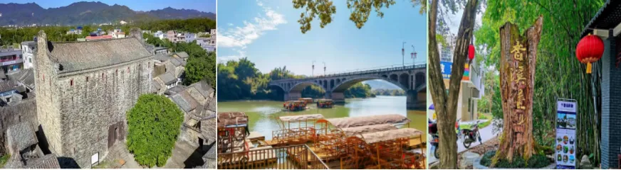 09:00乘车前往游览【香溪古堡】(含竹筏游船),在清澈的香溪河上乘竹筏漂流,可以欣赏沿河两岸美丽的景色,观赏渔民“河中抛网捕鱼”、“竹笼取宝”等活动。浓郁的古堡风情,独具岭南建筑艺术遗风的古码头、五宅古围、正街和廖氏宗祠等古建筑群,其悠久的历史、深厚的文化积淀,给人留下时光倒流的回味和联想空间。