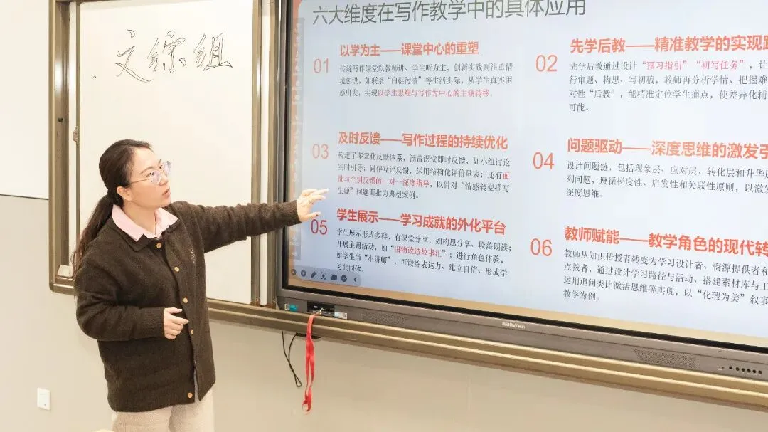 各教研组长(文综组朱伟老师、数经组倪蕾老师、英语组姜丹丹老师、科信组郭赫老师、体音美组鞠艳龙老师)从学科队伍建设、教研活动实效、教学质量监控、课程资源开发及未来教研规划等方面进行了系统阐述。他们不仅汇报了本学期组织的主题教研、观课议课、学术竞赛等常规活动的成果,更重点介绍了在推动素养课堂改革、探索校本化课程实施路径、构建学科特色等方面所做的顶层设计与具体实践,展现了教研组作为学校教学质量基石的引领作用。