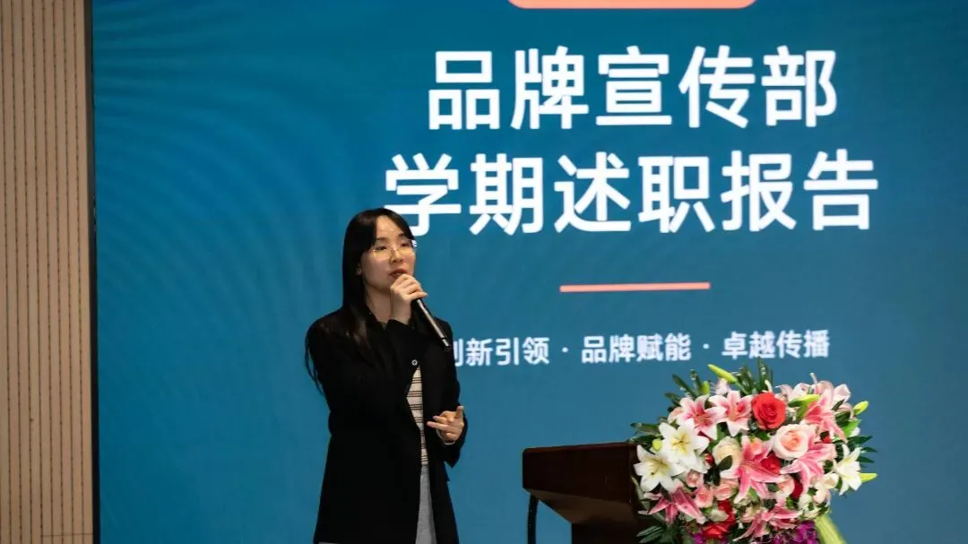 品牌宣传部负责人侯晓钧老师系统总结了本学期的品牌建设工作,重点展示了团队通过构建视频栏目矩阵(如“中加少年说”“学子画像”)、实现流程标准化及完成15万+点击量等具体成果,生动诠释了如何以创新内容与专业传播,有效讲述中加故事、提升品牌影响力。