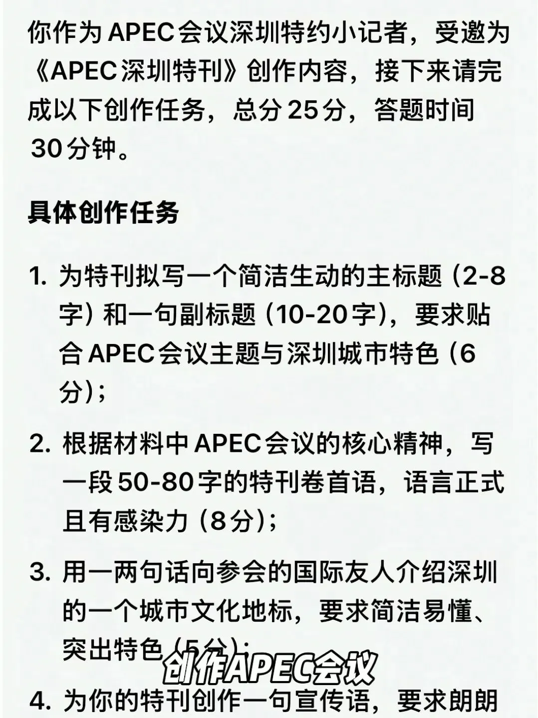 福田区的语文卷更绝,直接引入新闻播报音频,让孩子根据听力信息,给四张紫花风铃木实景照片匹配最佳观赏地点;南山区更“敢”,让四年级学生创作APEC会议深圳特刊。一系列“不按常理出牌”的题目,瞬间点燃家长群:“太难了!完全超纲!”“这是在选拔公务员吧?”“没带孩子逛过南山公园,题都没法答!”吐槽声此起彼伏,仿佛卷子成了“折腾家长和孩子的元凶”。