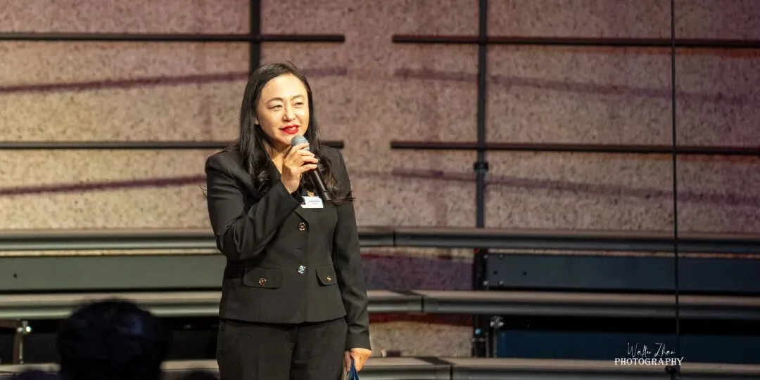 (新任阿凯迪亚市市长王爱琳致辞——赵国庆拍摄)
