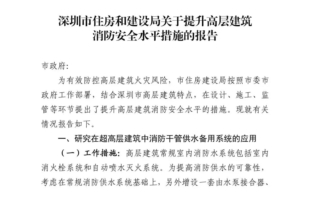 《深圳市超高层建筑消防安全系统治理工作方案》