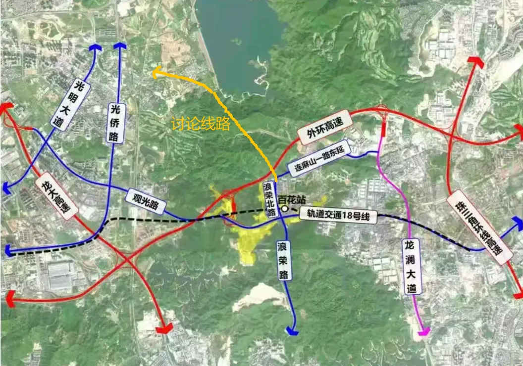 虽有深圳地铁18号线路白花站规划,但是目前建设时序并不明朗。另外一种方案是推动6号线支线南延途径白花至九龙山的方案。类似于深圳地铁16号线延伸至盐田的设想。