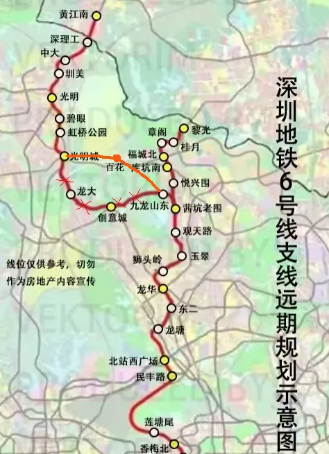 3、地铁6号南支线规划走宝安区的这段跟25号线规划站点重合(如下图所示)。4、如果6号支线取道白花,可以取消地铁18号线百花站的规划,这样不会重复建设,也强化了18号线快线的功能。6号支线南延线的规划调整:可实现白花从“边缘孤岛”向“光明科学城东门户”的功能跃升。通过“左翼研发、右翼转化”的分工协作,光明街道有望形成“基础研究在西、应用落地在东”的闭环生态,真正实现“两翼齐飞”。