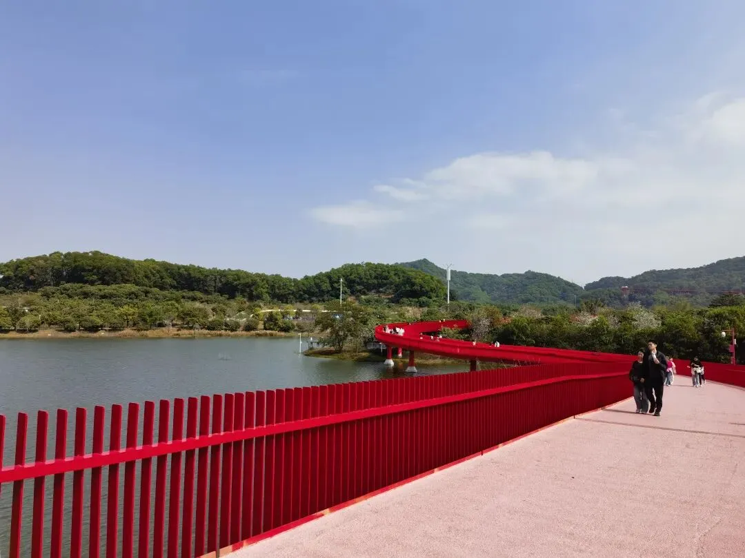 在深圳光明区,有一座将壮丽自然景观与丰富娱乐设施完美融合的城市公园——虹桥公园。它不仅是深圳的“生态封面”,也是家庭亲子出游的热门目的地。公园以一条长达4公里的“红色飘带”虹桥为核心,蜿蜒穿梭于403万平方米的青山碧水之间,被誉为“森林会客厅”。这里既有随手一拍即是大片的秀丽风光,也有让孩子们尽情“放电”的完善儿童娱乐设施,为市民游客提供了一站式的休闲体验。