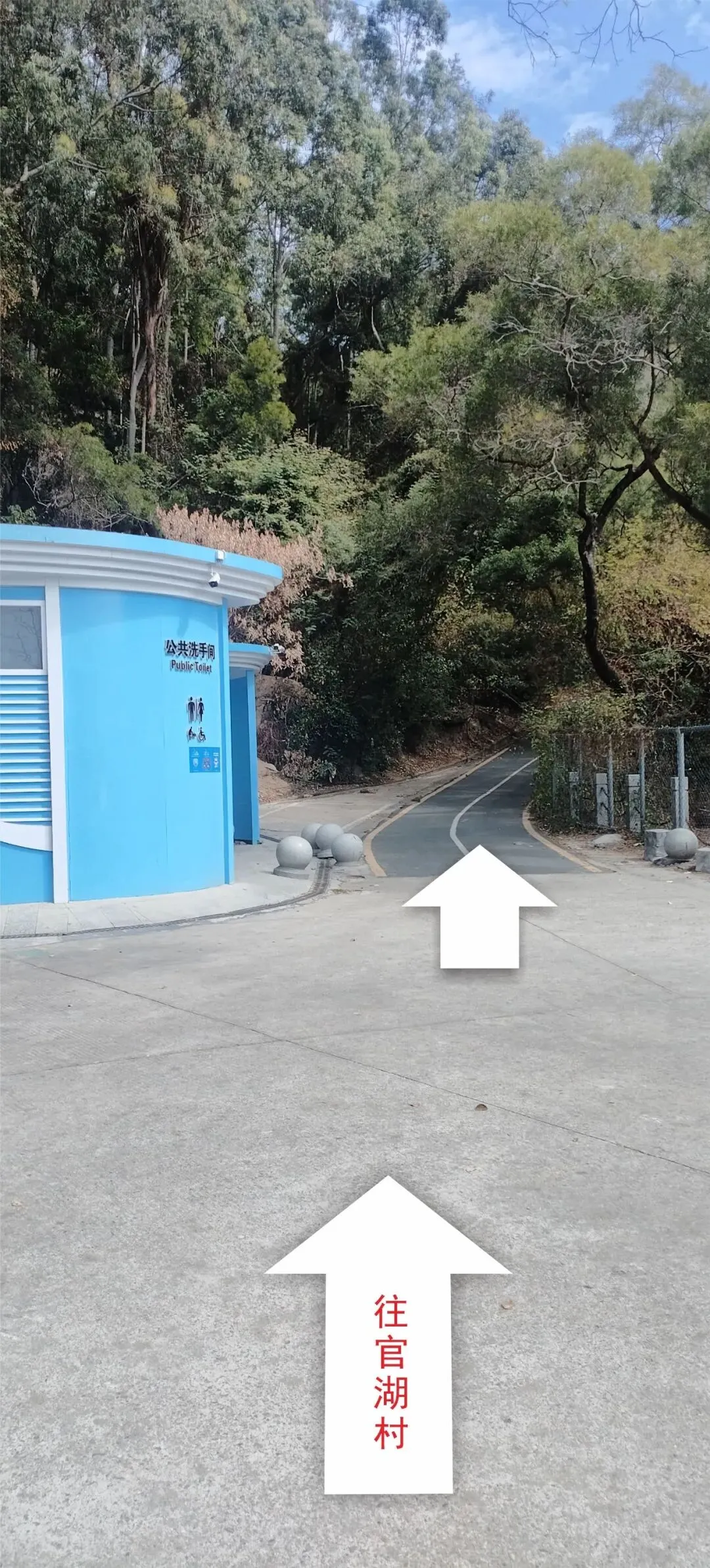 虎地排→沙鱼涌→官湖→迭福绿道(目前施在工要绕行)→咸头岭遗址→深圳燃气门口→山脊燃气管道线路→国家基因库(公交站/金沙大道)