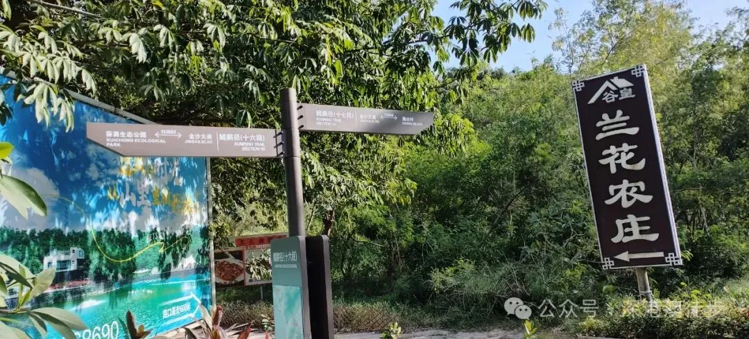 再往前走100米左右看马路左边有鲲鹏径的标识牌