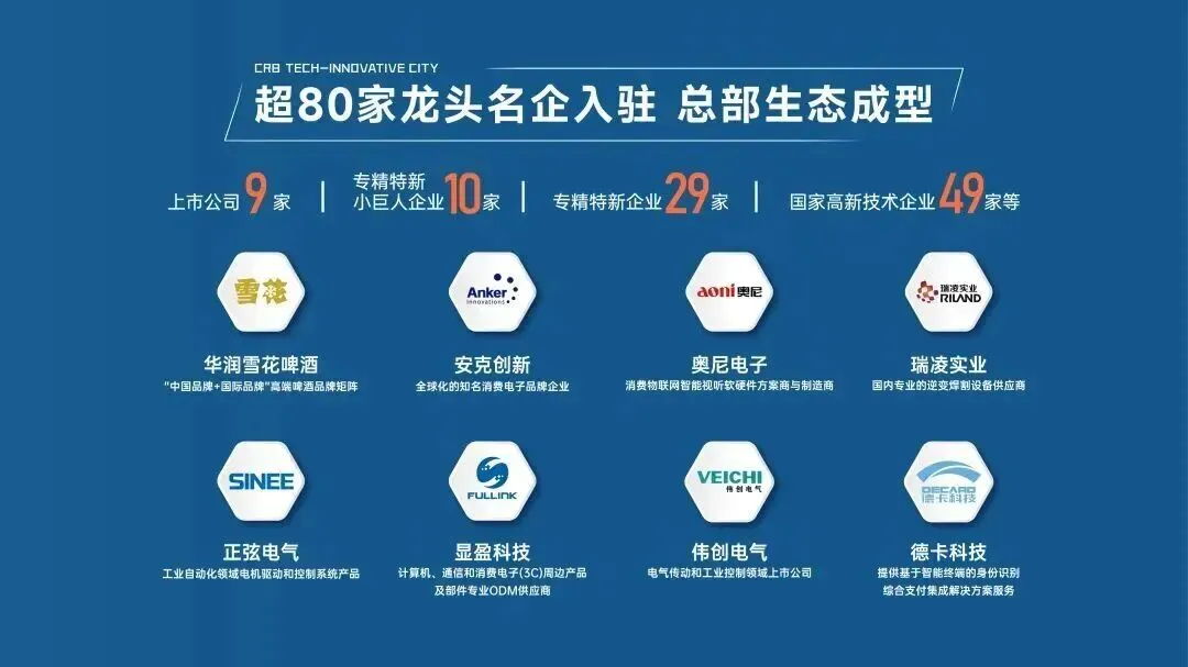 项目落地后,以华润雪花总部大厦为磁极,成功牵引上下游产业链聚集,构建了一个高浓度的企业生态圈。目前,这里已形成超80家知名企业的产业集群,擎领宝安区经济活力;其中,上市公司9家、专精特新小巨人企业10家、专精特新企业29家、国家高新技术企业49家,让片区实现了从单一制造业基地向“总部经济+产业研发+智能制造”集群转变的价值跃升。
