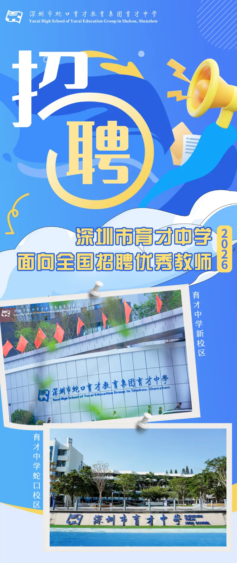 为加快建设卓立于粤港澳大湾区的中国标杆名校,进一步充实优秀教师队伍,育才中学桃花源校区、蛇口校区面向全国招聘各科名优教师。