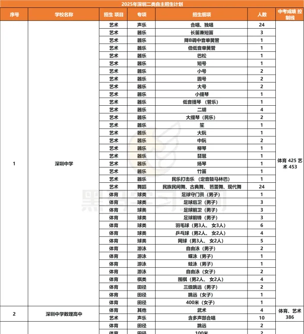 >2025年深圳二类自主招生计划,快收藏!