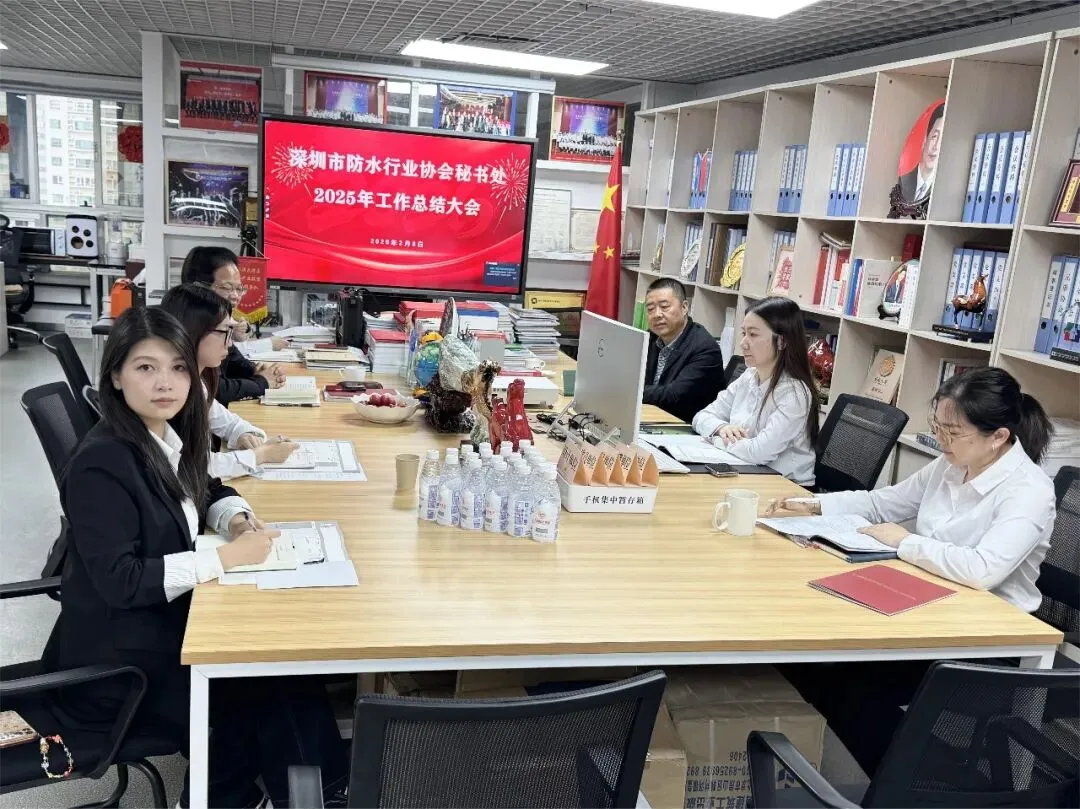 2026年2月8日,深圳市防水行业协会秘书处2025年工作总结大会召开。深圳市防水行业协会会长瞿培华、监事长刘单博、秘书长杨鸣、驻会副会长黄佳萍、培训部主任高子贻、综合部主任姚晨卉、财务部刘莲共7人参加会议,总工刘国华和财务部主任谢洁雯在外地线上参会。