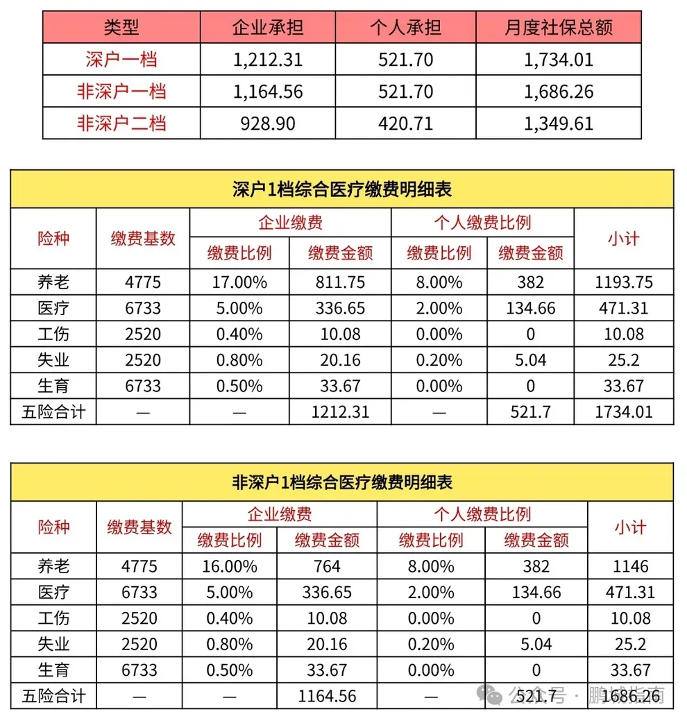 入户的直接经济影响:深户比非深户(一档)企业每月多缴约47.75元(养老保险部分),个人缴费无差异。