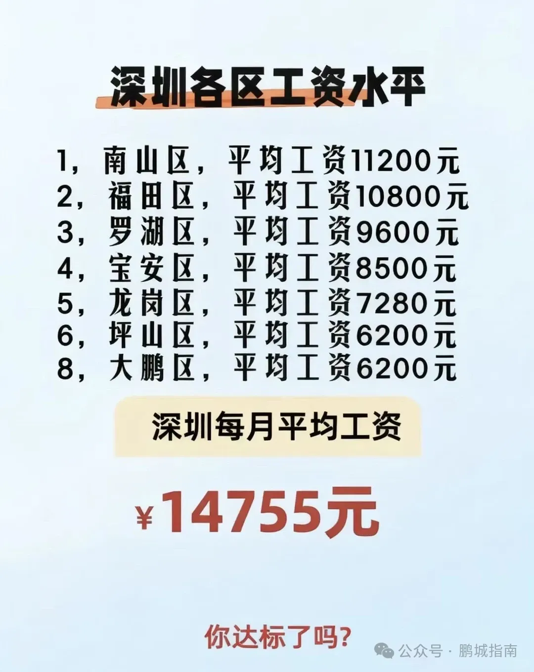 深圳各区工资水平