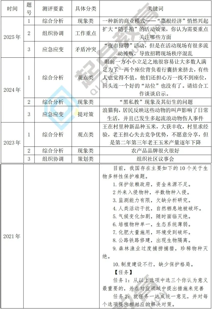 历年面试大量题型为综合分析题。近几年每一套题必有综合分析题型,22年、23年甚至一套题目中有2道综合分析题。属于必考题型,需重点学习。
