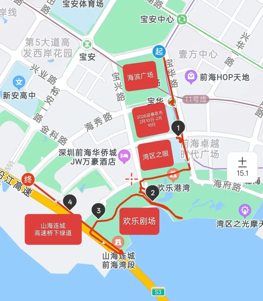 🚲 骑行路线:从海滨广场到高速桥下绿道