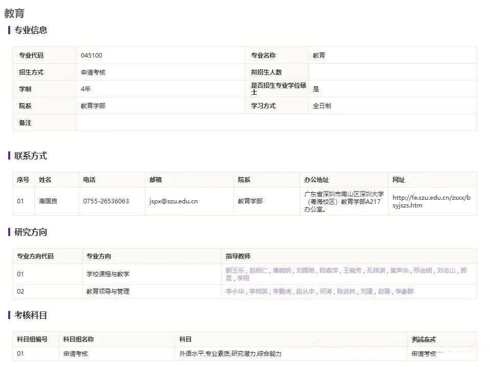 (二)专业介绍教育博士专业学位授权点拥有一支数量充足、水平和国际化程度较高的教师队伍,在教学科研和社会服务等方面取得突出成绩,具备培养教育专业博士的扎实学科基础和学术能力。在学校果程与敢学,敢育领导与筒课等领或取得了优势明是的学术成果、深圳大学作为综合件大学具备培养高层次教育人才的综合优势,能再好适应今跨界、跨领域、跨学科人才培养的主流趋势。