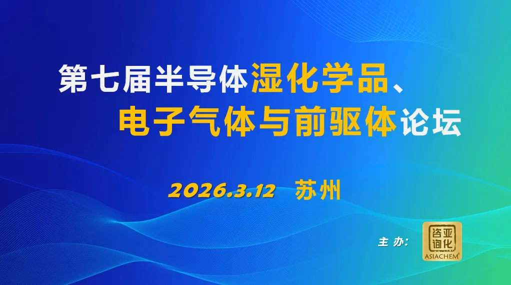 第七届半导体湿化学品、电子气体与前驱体论坛将于2026年3月12日在苏州召开。会议由亚化咨询主办,多家国内外龙头企业重点参与。