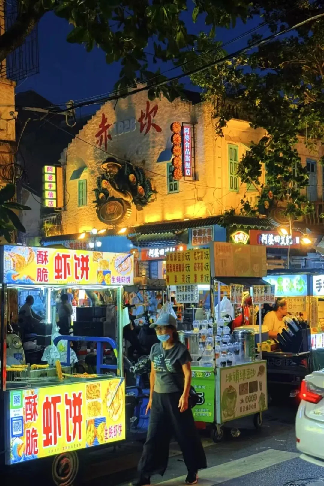 夜宵的江湖,属于炭火与生蚝。尤其在赤坎老街一带,当暮色四合,蚝壳撬开的清脆声响便成了背景音乐。最负盛名的官渡生蚝,个头硕大,肉质丰腴。
