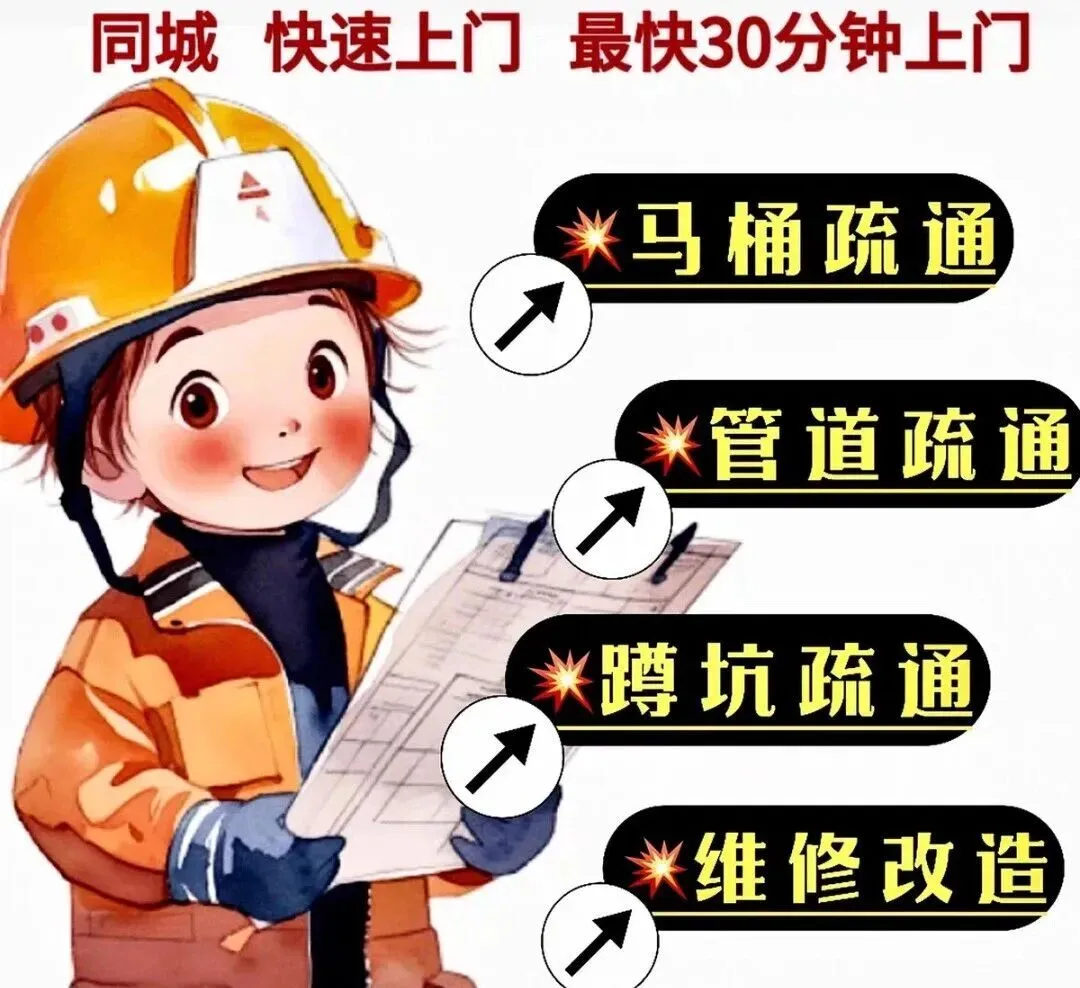 疏通服务:家庭、酒店、饭店、店铺下水道疏通;马桶堵塞处理与异物捞取;面盆、菜池、蹲坑、地漏专业疏通与维修