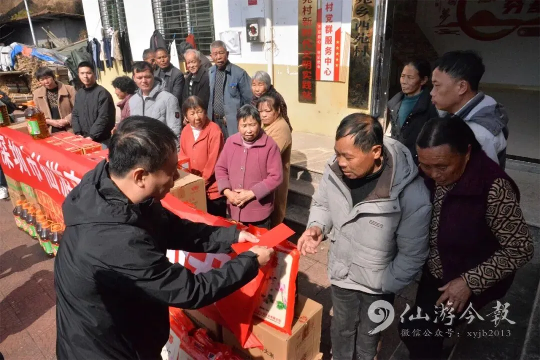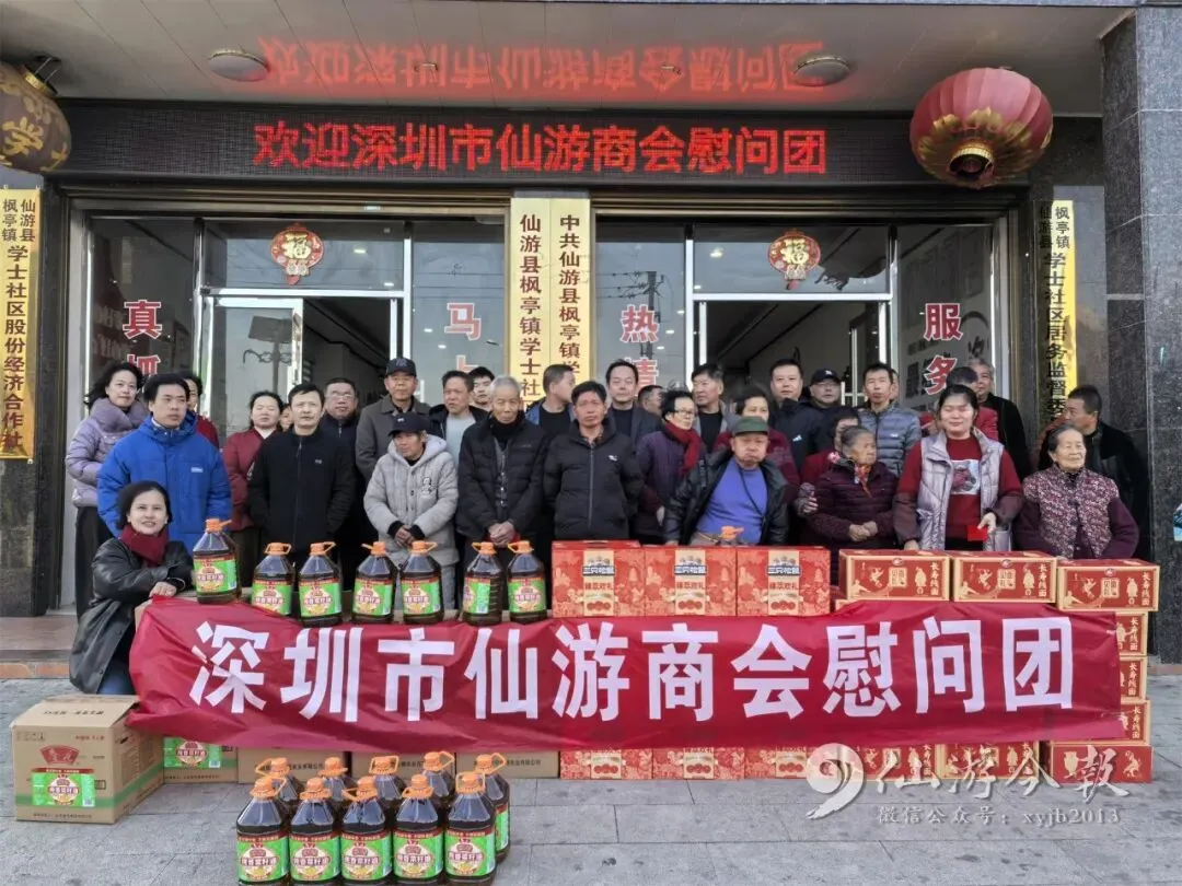 2月8日,深圳市仙游商会组织返乡慰问团,在一天内辗转我县4个乡镇村落,为111户低保家庭送上总价值8万元的新春物资及慰问金,以实际行动传递桑梓深情。