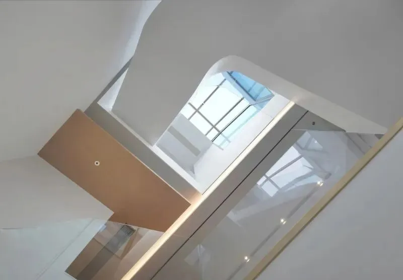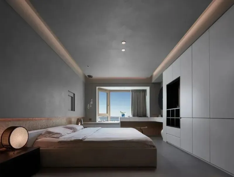 1 我一直觉得,房子住得舒服,真的和面积成正比吗,这套房子看视频每一层都是明亮的,走上二楼,楼梯旁边有长长的玻璃栏杆,安全感很强,二层是主卧,大床正对着窗,睁眼一看全是蓝色的天空和海,我当时就在想,这得多幸福啊,睡觉都变香了,阳光洒进来的时候,整个卧室亮得有点像电影画面,但其实家里真的有一张大床,一个落地窗,我觉得我也能满分幸福。