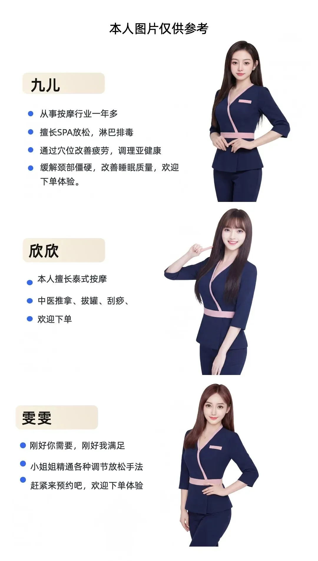 情侣/夫妻档:两个人都累,谁也不想动。可以约两位技师同时上门,在自家客厅享受双人服务,不用轮流看家,不用互相将就。